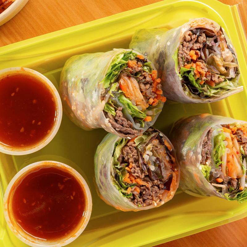 Each Rice Wrapper Roll is hand-wrapped to order using fresh, vibrant ingredients and your choice of signature protein. Choose from four standout flavors: tender Korean Beef, crisp Veggie, crunchy-munchy Crunch Munch, or Mary’s bold Signature Roll. Wrapped in delicate rice paper, every roll delivers a light yet flavorful bite.